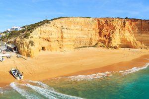 La playa es, como todas las del Algarve, un monumento natural, pero si hay algo que la hace única es su arco de piedra, creado por la acción del oleaje y del viento. Si a ello le unimos que con marea baja vas a disfrutar de unas vistas espectaculares y de sitio suficiente, la playa de Albandeira es una de las imprescindibles. Se encuentra próxima a la localidad de Carvoeiro.
