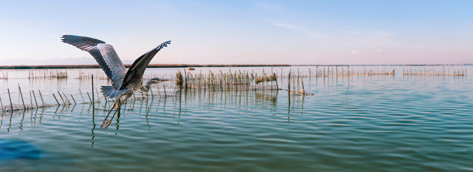 El Parque Natural de l’Albufera, a unos 10 kilómetros al sur de la ciudad de València, es uno de los lugares más emblemáticos de la región. Con casi 21.000 hectáreas, se trata de uno de los mayores lagos de España y está rodeado por una extensa área de arrozales, bosques y marismas.