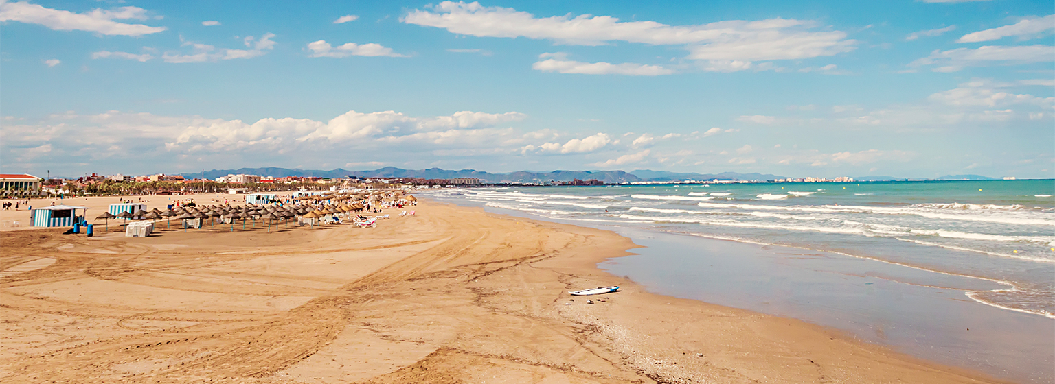 Una de las playas más icónicas de la región es la playa de la Malvarrosa, en Valéncia. Se trata de un tramo de arena dorada y aguas tranquilas, perfecto para relajarse bajo el sol. Cuenta con una amplia oferta de restaurantes y bares donde disfrutar de la deliciosa gastronomía valenciana.