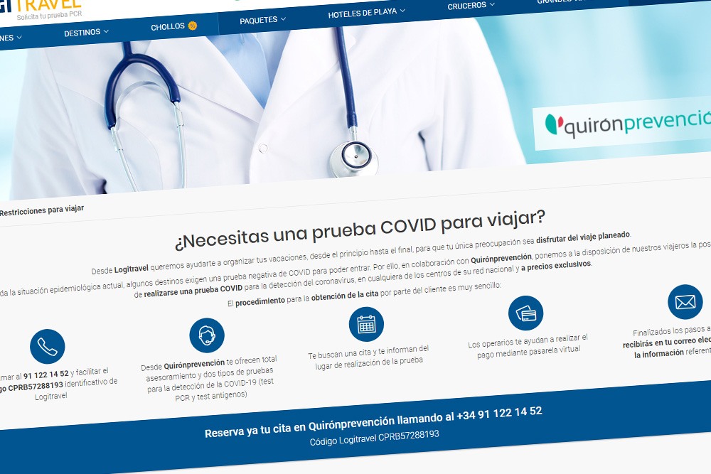 Haz click aquí para encontrar toda la información sobre la realización de pruebas COVID con Quirónprevención y Logitravel.
